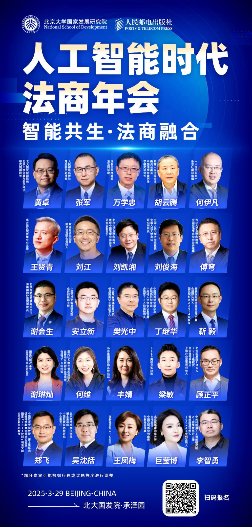 由人民郵電出版社、智元法律課堂聯(lián)合主辦,北京大學(xué)國家發(fā)展研究院、承澤商學(xué)共同協(xié)辦的“2025人工智能法商年會”將于3月29日在北京大學(xué)國家發(fā)展研究院承澤園校區(qū)盛大舉行。