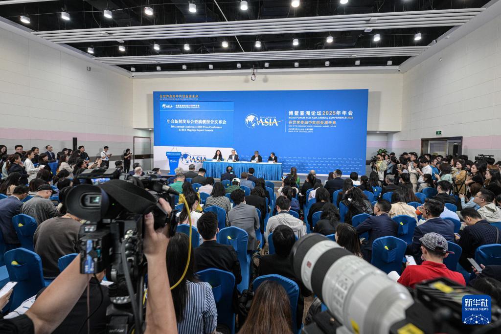 3月25日在海南博鰲拍攝的博鰲亞洲論壇2025年年會(huì)新聞發(fā)布會(huì)暨旗艦報(bào)告發(fā)布會(huì)現(xiàn)場。