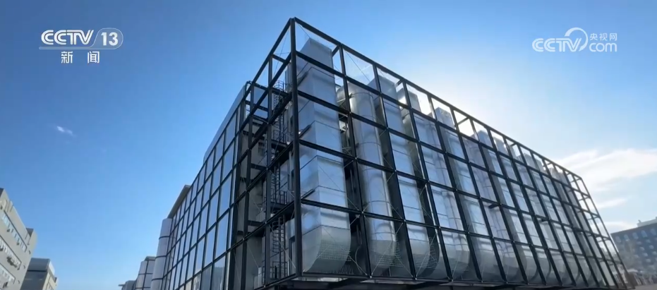 作為建在北京城區(qū)里的公共智算中心,它在建筑設計上不僅要講究美觀,更要實現(xiàn)節(jié)能和環(huán)保的效果。這個樓體立面由一排排的大鋼管組成,這些鋼結構就是間接蒸發(fā)冷機組設備,用來給智算中心的服務器集群散熱,而樓體兩側幕墻安裝的太陽能光伏板,可以為智算中心提供清潔能源。