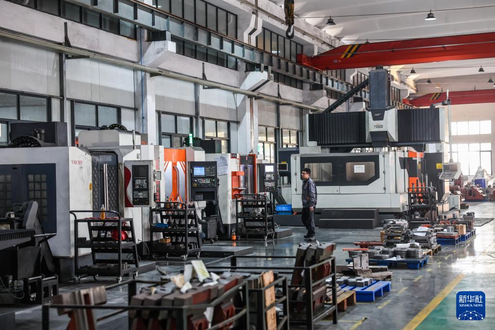 3月26日,在位于嘉興南湖區(qū)大橋鎮(zhèn)的浙江邁興途智能裝備股份有限公司車間內(nèi),工作人員在查看生產(chǎn)設(shè)備。