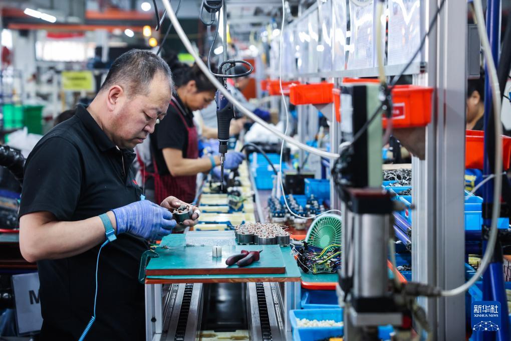 3月26日,在位于嘉興南湖區(qū)余新鎮(zhèn)的浙江亞特電器股份有限公司生產(chǎn)車(chē)間,工作人員對(duì)出口的園林工具進(jìn)行組裝。
