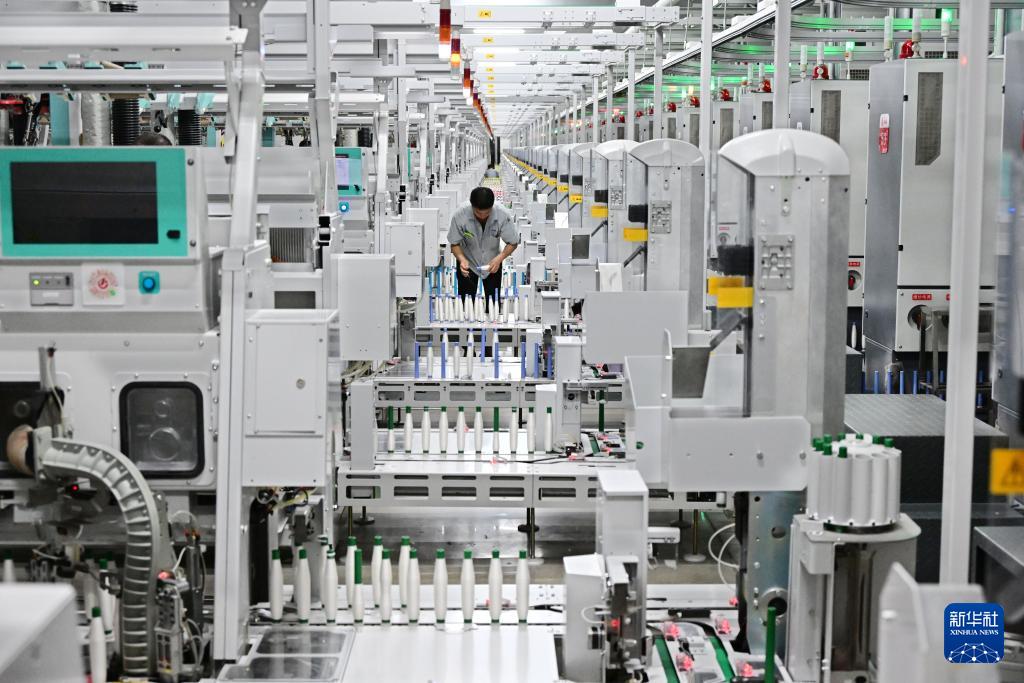 ??即墨區(qū)一家智慧紡紗企業(yè)的職工駕駛代步車巡檢自動(dòng)化超長細(xì)紗生產(chǎn)線(3月25日攝)。