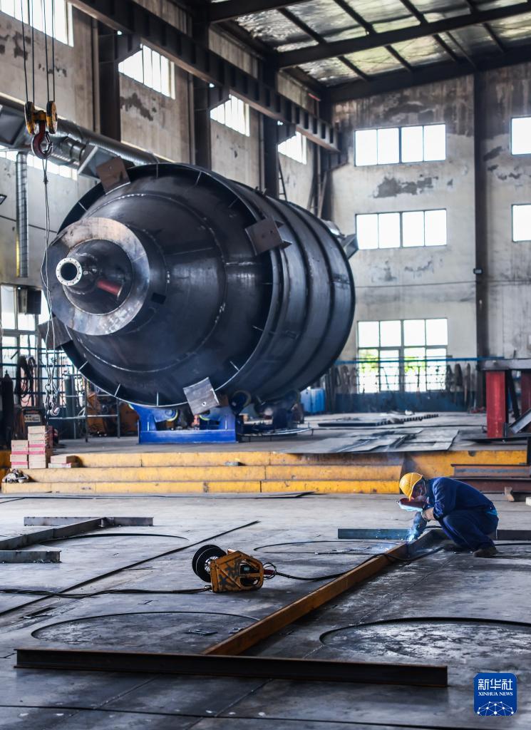 4月9日,在位于慈溪的國(guó)家專精特新“小巨人”企業(yè)寧波太極環(huán)保設(shè)備有限公司車間內(nèi),工人在生產(chǎn)、組裝銷往東南亞的環(huán)保設(shè)備。