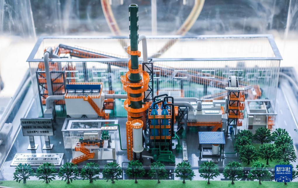 4月9日在位于慈溪的寧波太極環(huán)保設(shè)備有限公司拍攝的環(huán)保設(shè)備展示模型。