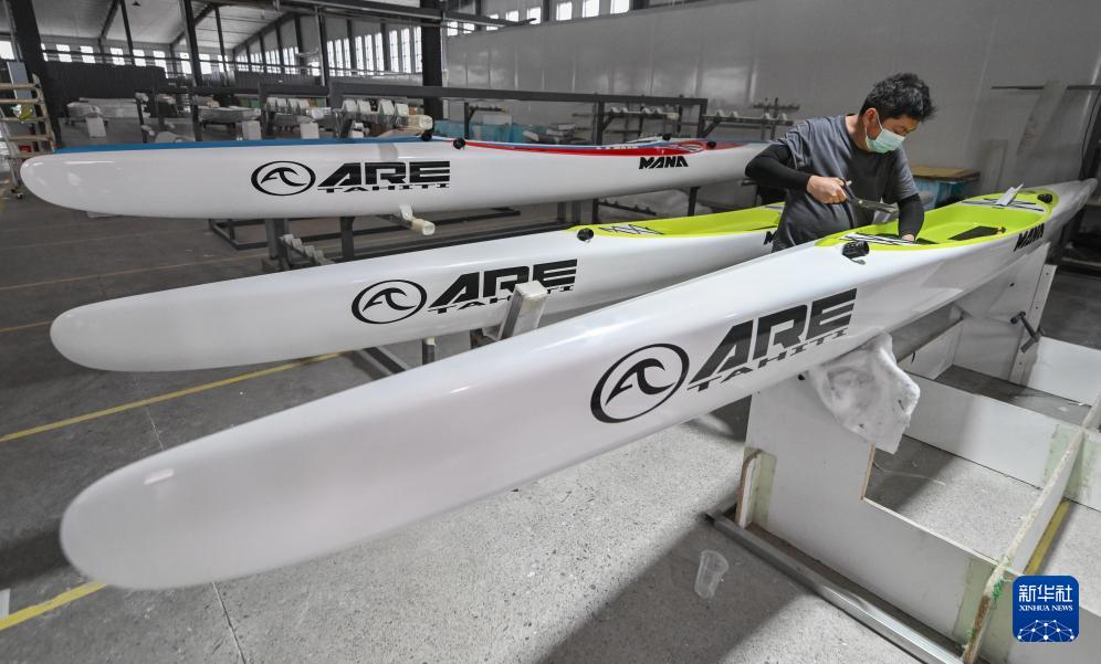 4月24日,在速力復(fù)合材料有限公司的生產(chǎn)車間內(nèi),工人在裝配海洋船。2024年,速力復(fù)材成為巴黎奧運會新增的風(fēng)帆水翼賽事唯一指定生產(chǎn)商。