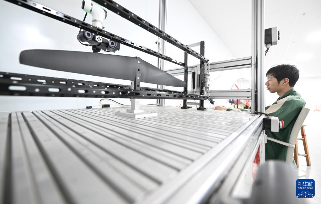 4月24日,在速力復(fù)合材料有限公司的生產(chǎn)車間內(nèi),工人在檢測生產(chǎn)的水翼產(chǎn)品。2024年,速力復(fù)材成為巴黎奧運(yùn)會(huì)新增的風(fēng)帆水翼賽事唯一指定生產(chǎn)商。