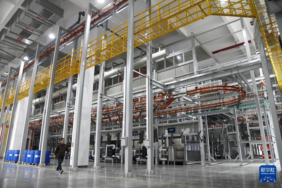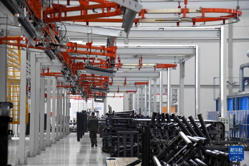 青島英派斯健康科技股份有限公司智慧工廠內(nèi)的自動噴涂生產(chǎn)線(4月22日攝)。