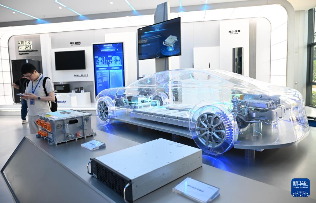 4月29日在珠海格力電子元器件有限公司拍攝的新能源汽車碳化硅充電模塊、驅(qū)動電機控制器。