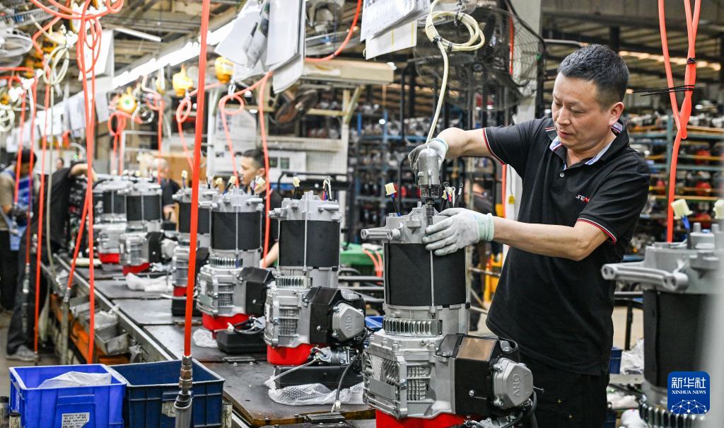 5月9日,工作人員在位于北碚區(qū)的神馳機(jī)電股份有限公司發(fā)電機(jī)生產(chǎn)車間作業(yè)。