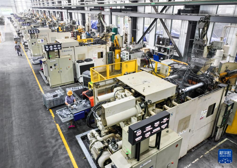 這是5月9日在位于北碚區(qū)的重慶順多利機(jī)車有限責(zé)任公司鑄造基地拍攝的自動(dòng)化生產(chǎn)作業(yè)現(xiàn)場(無人機(jī)照片)。