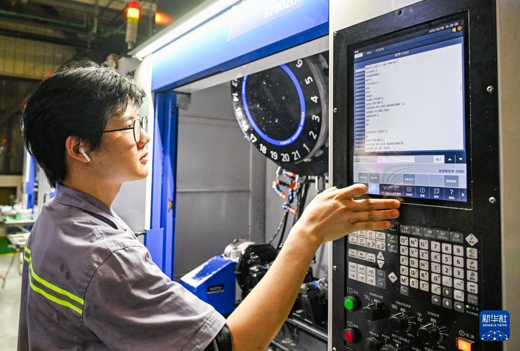 這是5月9日在位于北碚區(qū)的重慶順多利機(jī)車有限責(zé)任公司精工基地拍攝的自動(dòng)化生產(chǎn)作業(yè)現(xiàn)場。