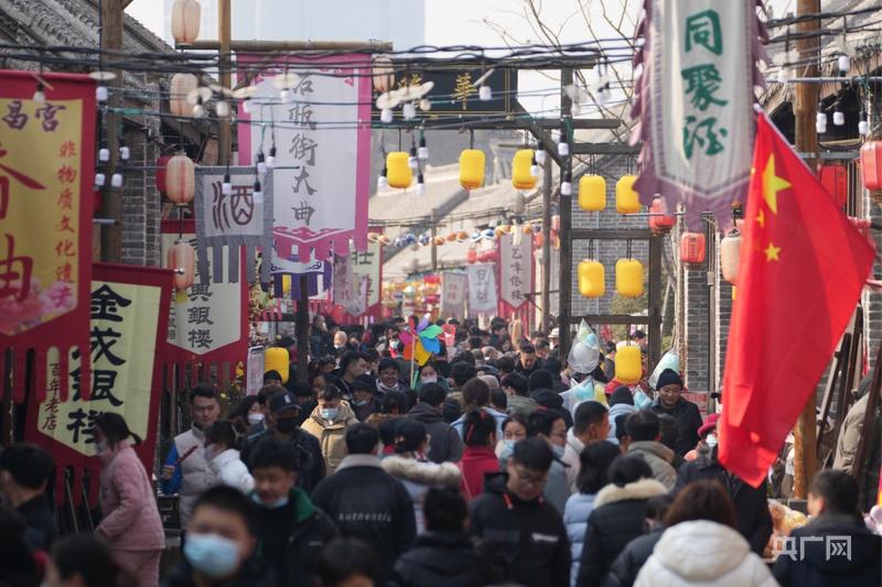 春節(jié)假期濉溪古城內絡繹不絕的游客(央廣網記者 徐鵬 攝)