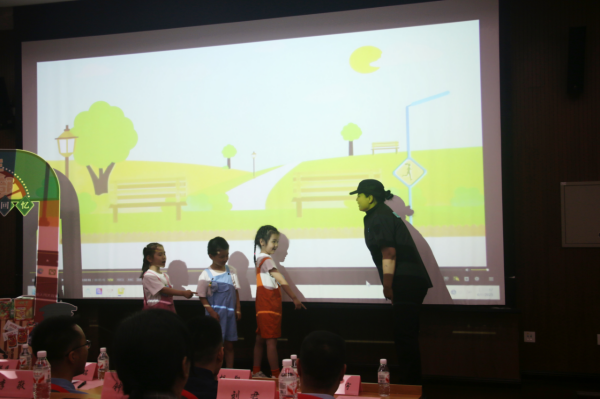 互動(dòng)提問(wèn)環(huán)節(jié)中,孩子們踴躍發(fā)言,圍繞校園欺凌、網(wǎng)絡(luò)安全等熱點(diǎn)問(wèn)題與大學(xué)生展開(kāi)交流,在思維的碰撞中深化了對(duì)法律知識(shí)的理解。此外,幼兒園小朋友表演的《安全大闖關(guān)——不輕信陌生人》情景劇,以童真童趣的方式傳遞了自我保護(hù)的法治理念。