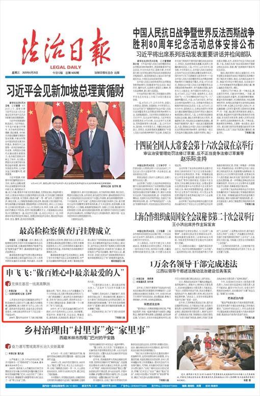 2022年,申飛飛榮獲全國(guó)“人民滿意的公務(wù)員”稱號(hào)。“當(dāng)時(shí)鄉(xiāng)親們聽說我從北京回來,就第一時(shí)間往派出所趕,非要把獎(jiǎng)?wù)履贸鰜碓俳o我戴一次?!鄙觑w飛自豪地說,“他們說,這個(gè)牌牌是國(guó)家給的,但他們還想給我再戴一下。國(guó)家滿意,老百姓更滿意?!?/p>