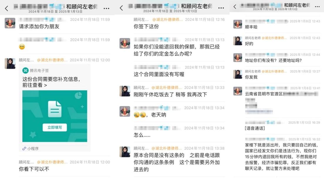 2024年12月,江西客戶S女士在網(wǎng)上看到一則“代理退?!钡膹V告,聲稱“全額退保,不成功不收費(fèi)”。因當(dāng)時(shí)經(jīng)濟(jì)壓力較大,并且缺乏對(duì)黑產(chǎn)中介的了解,S女士接觸了該所謂的“專業(yè)代理機(jī)構(gòu)”。在對(duì)方的誘導(dǎo)下,客戶以“銷售誤導(dǎo)”等虛假理由投訴保險(xiǎn)公司,要求全額退保,同時(shí)還向?qū)Ψ街Ц读?800元作為“定金”。然而后續(xù)幾天,S女士始終沒(méi)有等到對(duì)方的消息。
