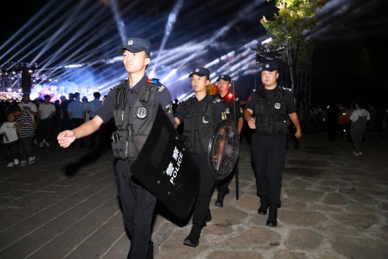 夜幕降臨,華燈點(diǎn)亮貫城河,平遠(yuǎn)古鎮(zhèn)與大府頭廣場(chǎng)游人如織。裝備齊整的民警、英姿颯爽的特警,成為熙攘人潮中最安心的存在。“我們必須常態(tài)化巡邏,確保群眾第一時(shí)間能找到警察?!彪p堰派出所民警余莎的話語(yǔ),道出了“流動(dòng)管家”的日常。
