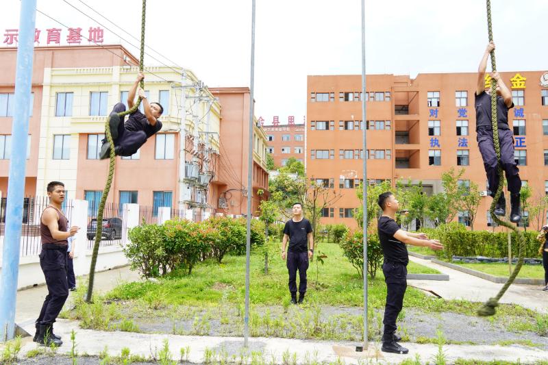 在隨后的大練兵活動中,特警隊員們開展了多項科目的訓練。“預備,開始!”教官一聲令下,兩名特警隊員如離弦之箭,猛地蹬地起躍,雙手緊扣垂下的繩索,腰腹與雙臂協(xié)同發(fā)力,如同矯健的壁虎迅速向上攀爬,展現(xiàn)出卓越的體能和攀爬技巧。