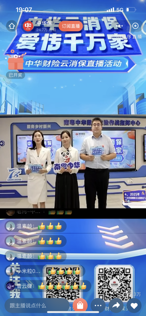 中華財險廣東分公司結(jié)合“7.8 全國保險公眾宣傳日”,創(chuàng)新開展消保主題直播,講解消費者權(quán)益保護知識,圍繞理賠、投訴處理等熱點問題答疑解惑,累計吸引超萬人次觀看。分公司下轄機構(gòu)同步進行轉(zhuǎn)發(fā)和推廣,擴大宣傳覆蓋面,提升公眾維權(quán)意識。