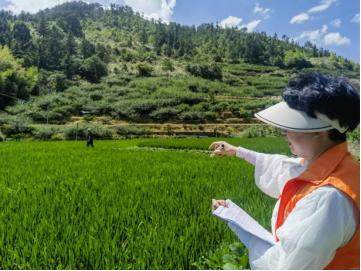 驗標(biāo)員曾燕玲的背包里,全縣農(nóng)險驗標(biāo)分布圖已標(biāo)注百余村落坐標(biāo)。密密麻麻的紅點,對應(yīng)著數(shù)千塊分散田地的勘驗記錄。在熾烈的陽光下,灼熱的田埂仿佛要將鞋底融化。而她和農(nóng)險伙伴們依舊頂著烈日,每日步行超萬步,日均完成8個村莊的查勘驗標(biāo)工作。