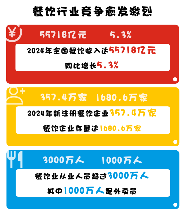 餐飲行業(yè)競爭激烈。數(shù)據(jù)顯示,截至2024年,我國餐飲企業(yè)數(shù)量已突破1680萬家,餐飲業(yè)從業(yè)人員超3000萬人,其中超1000萬人為外賣員。在此背景下,與外賣平臺合作成為不少商家順應時代、立足行業(yè)的重要選擇。