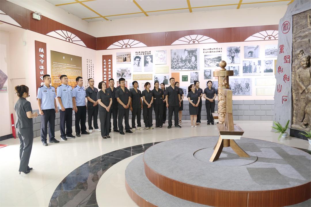 圖為延安市中級人民法院機(jī)關(guān)黨委組織黨員到陜甘寧邊區(qū)高等法院舊址,開展“學(xué)習(xí)馬錫五審判方式 傳承人民司法優(yōu)良傳統(tǒng)”主題黨日活動。 本報通訊員 劉涵雨 攝