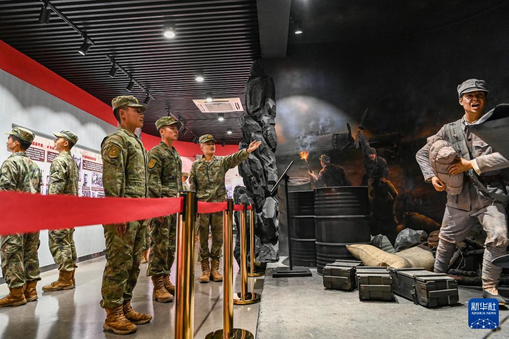 陸軍第73集團(tuán)軍某旅夜襲陽(yáng)明堡“戰(zhàn)斗模范連”戰(zhàn)士在連史館學(xué)習(xí)連隊(duì)歷史 (2023年12月2日攝)。新華社發(fā)(劉志勇攝)