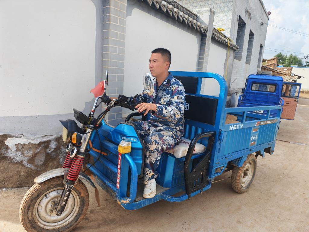 8月10日,王棟駕駛農(nóng)用車準備運送物資。新華社記者 崔翰超 攝