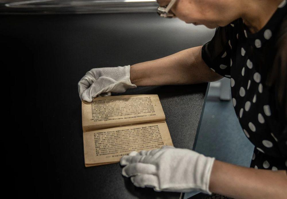8月4日,遼沈戰(zhàn)役紀念館工作人員展示館內收藏的穆青同志采寫的《東北抗日聯軍斗爭史略》。(遼沈戰(zhàn)役紀念館供圖)