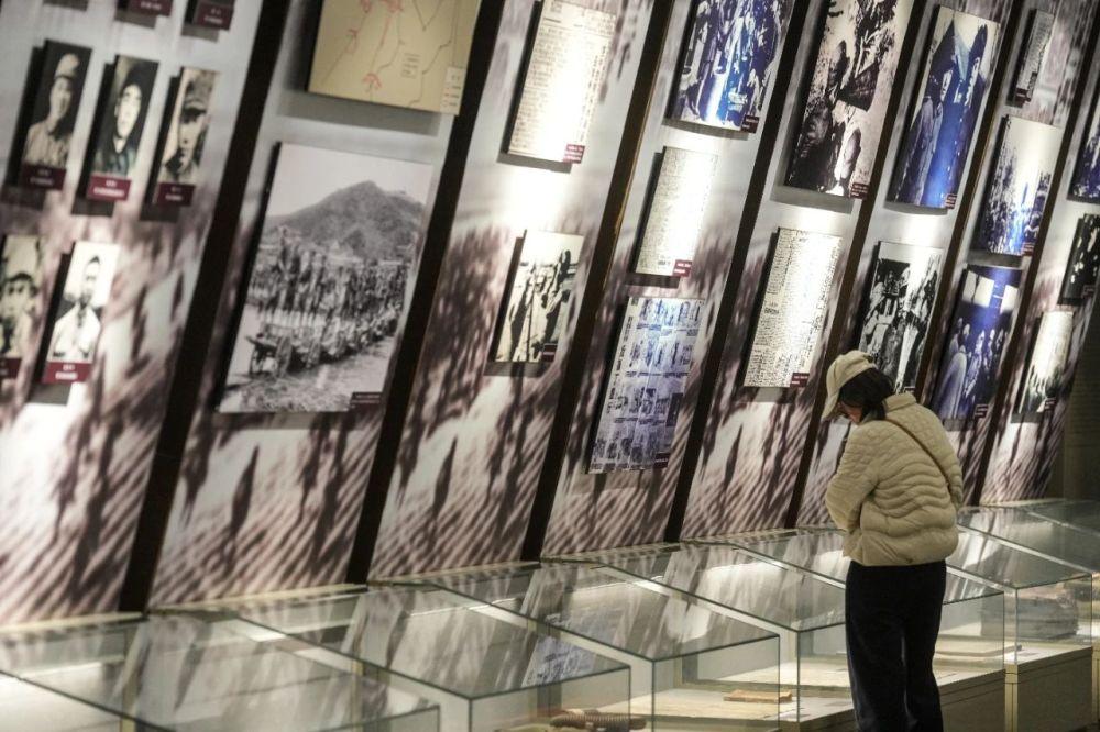 參觀者在遼沈戰(zhàn)役紀念館內參觀(4月1日攝)。遼沈戰(zhàn)役紀念館收藏了穆青同志采寫的《東北抗日聯軍斗爭史略》。新華社記者潘昱龍攝