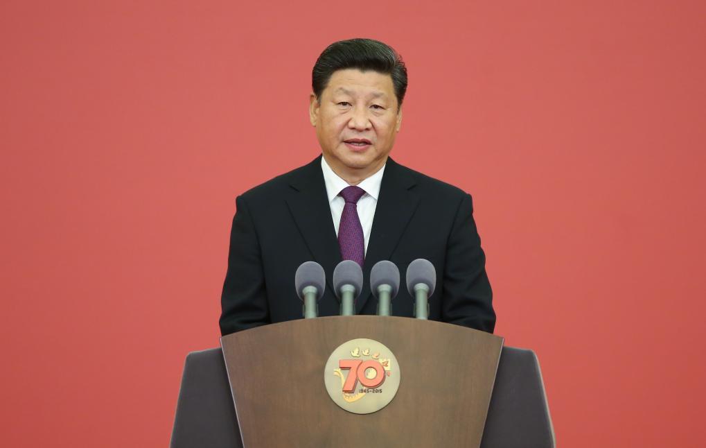 ??2015年9月,中國人民抗日戰(zhàn)爭(zhēng)勝利70周年紀(jì)念章頒發(fā)儀式在北京人民大會(huì)堂隆重舉行。習(xí)近平總書記發(fā)表重要講話。新華社記者 龐興雷 攝