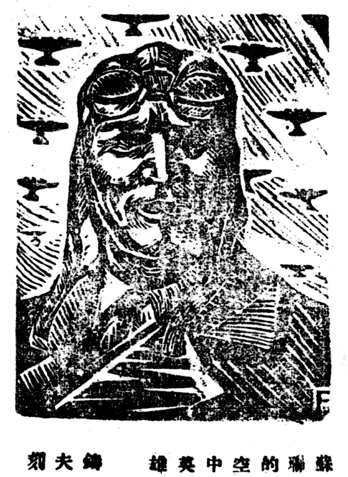 圖為1939年8月18日,《新華日?qǐng)?bào)》刊登鑄夫創(chuàng)作的《蘇聯(lián)的空中英雄》。