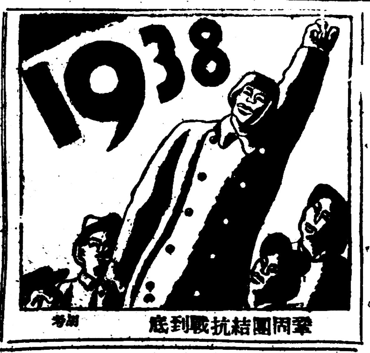 圖為1938年1月11日,《新華日?qǐng)?bào)》創(chuàng)刊號(hào)刊登胡考創(chuàng)作的《鞏固團(tuán)結(jié)抗戰(zhàn)到底》。