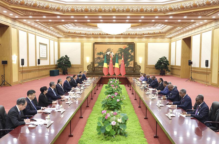 習(xí)近平強(qiáng)調(diào),剛果(布)擔(dān)任中非合作論壇非方共同主席國以來,同中方一道積極推動(dòng)北京峰會成果落實(shí),取得可喜成績。中方愿同非方共同實(shí)施好“十大伙伴行動(dòng)”,打造綠色產(chǎn)業(yè)、電子商務(wù)和支付、科技、人工智能等新增長點(diǎn),推動(dòng)中非合作提質(zhì)升級。當(dāng)前國際形勢變亂交織,中國和非洲作為全球南方重要成員,要肩負(fù)起捍衛(wèi)國際公平正義、維護(hù)世界和平、促進(jìn)共同發(fā)展的歷史責(zé)任,攜手推動(dòng)構(gòu)建人類命運(yùn)共同體。