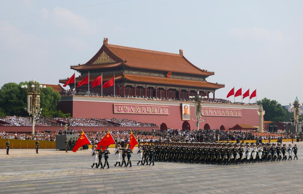 9月3日,紀(jì)念中國人民抗日戰(zhàn)爭暨世界反法西斯戰(zhàn)爭勝利80周年大會在北京隆重舉行。這是國旗護衛(wèi)隊在行進中。新華社記者 魏培全 攝