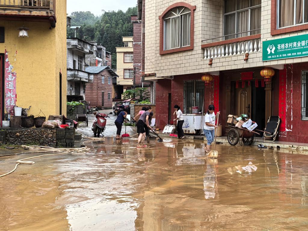 洪水退去,黨員干部與群眾一起展開(kāi)道路清淤工作。(受訪(fǎng)者供圖)