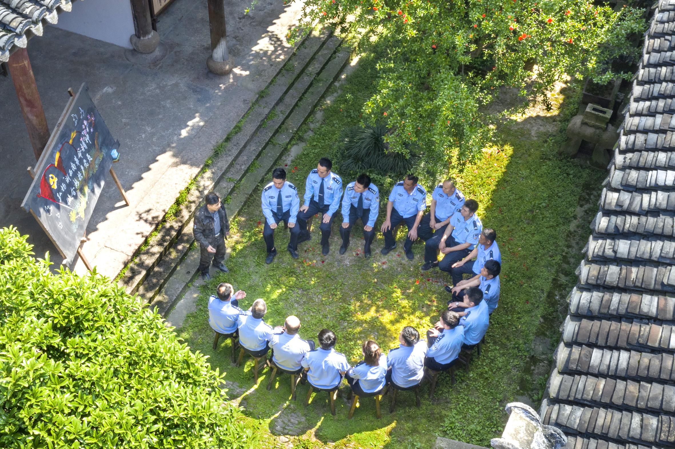 浙江省麗水市縉云縣壺鎮(zhèn)派出所民警在中共縉云一大會址(燕翼小學)聽老黨員講述縉云早期黨組織的發(fā)展歷程和紅色戰(zhàn)斗史。 章勛 攝