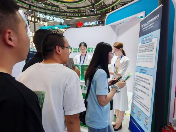 觀眾在展臺(tái)前積極參與網(wǎng)絡(luò)安全知識(shí)答題集章活動(dòng)