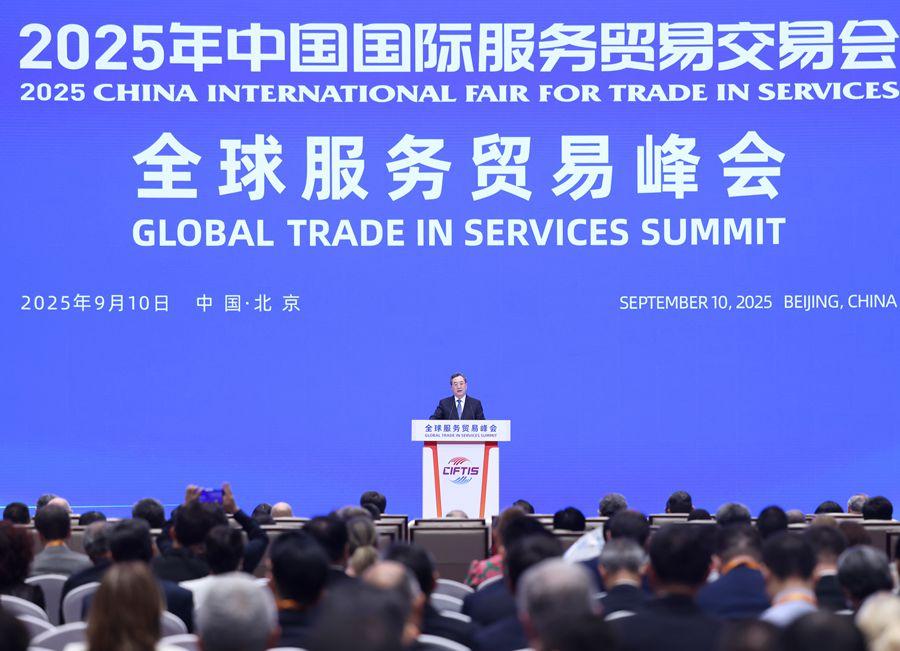 9月10日,2025年全球服務貿易峰會在北京舉行。中共中央政治局常委、國務院副總理丁薛祥出席峰會并發(fā)表主旨講話。新華社記者 丁林 攝