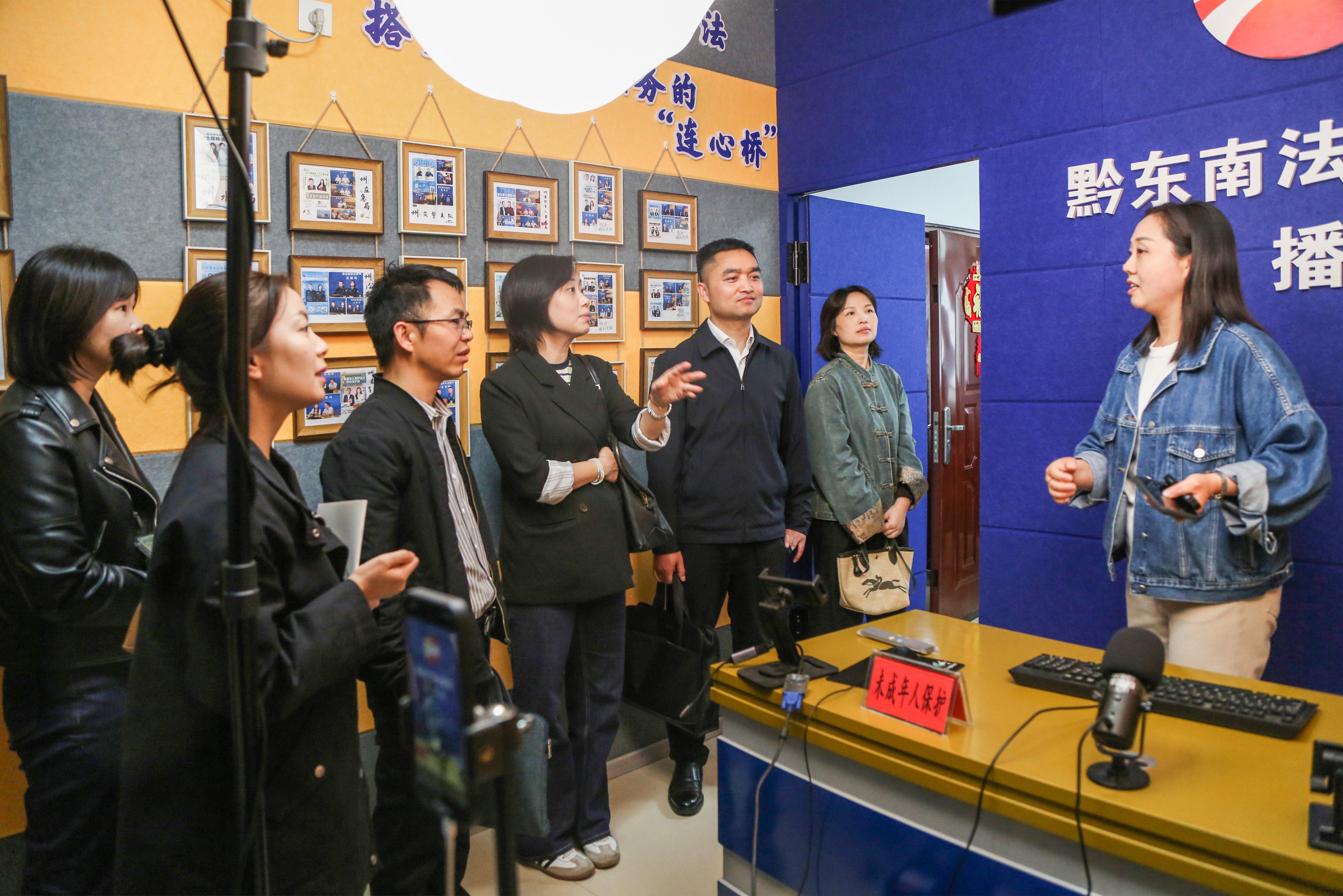 圖為4月28日,都勻市司法局考察組來(lái)黔東南考察交流司法行政“新媒體”對(duì)外宣傳工作。