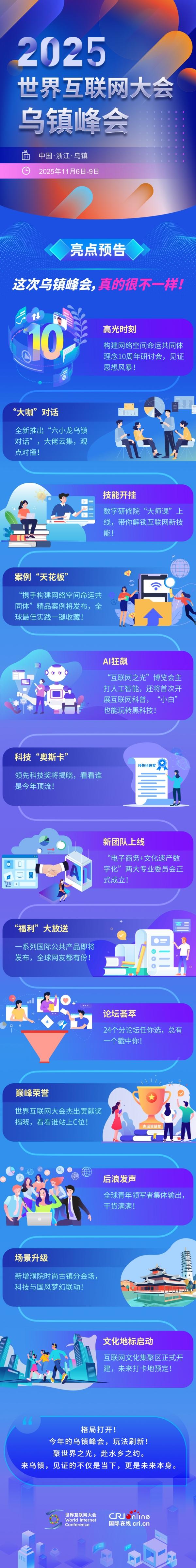 當千年文明對話前沿科技,一場關(guān)于數(shù)字未來的無限想象,正在這里展開。這是一場全球互聯(lián)網(wǎng)的頂級盛會,更是一次未來之旅。今年“玩法”全面升級,更潮、更酷、更有料!鎖定2025年烏鎮(zhèn)峰會,一起定義未來!
