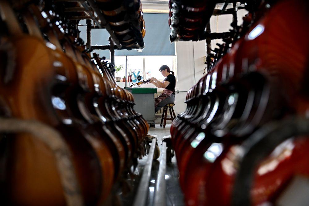 2025年5月28日,河北省武強(qiáng)縣一家樂器生產(chǎn)企業(yè)的工人在制作尤克里里。武強(qiáng)縣樂器產(chǎn)業(yè)歷經(jīng)30余年的發(fā)展,形成擁有超過150家企業(yè)、從業(yè)人員萬(wàn)余人的產(chǎn)業(yè)集群,產(chǎn)品覆蓋100多個(gè)品種、400多種規(guī)格。近年來,武強(qiáng)縣依托樂器文化產(chǎn)業(yè)資源,打造集樂器加工、樂器體驗(yàn)、音樂展演和休閑度假等業(yè)態(tài)為一體的周窩音樂小鎮(zhèn),同時(shí)創(chuàng)新“樂器+”鄉(xiāng)村振興模式,持續(xù)增強(qiáng)樂器產(chǎn)業(yè)的富民強(qiáng)縣作用。2024年武強(qiáng)縣樂器產(chǎn)業(yè)實(shí)現(xiàn)營(yíng)收23.8億元,旅游收入超10億元。