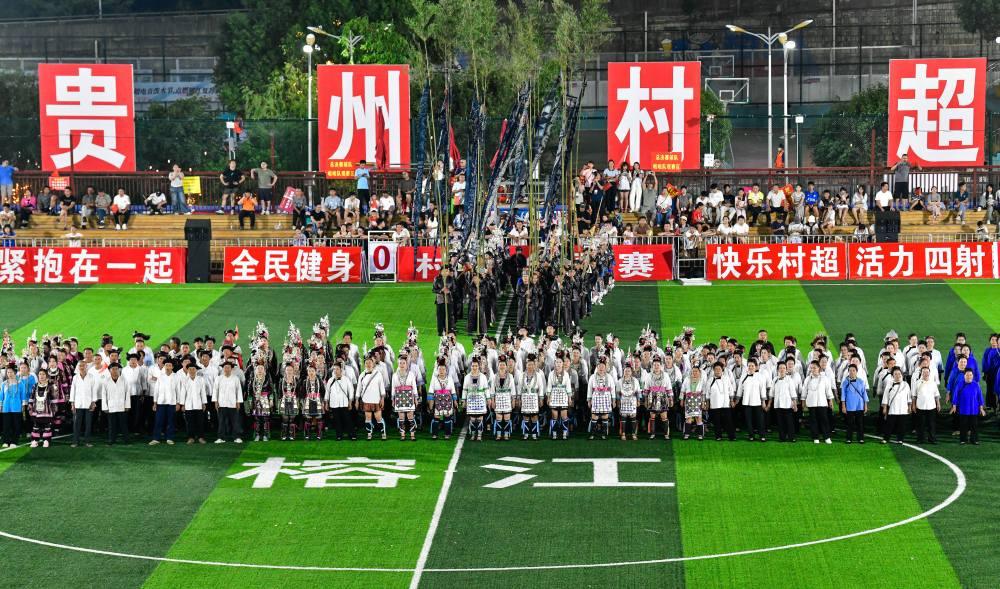 2025年8月23日,村民們?cè)谫F州“村超”球場(chǎng)演唱侗族大歌。當(dāng)日,2025年首屆“村超”全國(guó)賽總決賽在貴州榕江縣“村超”球場(chǎng)舉行。賽事期間同時(shí)舉辦豐富多彩的民族歌舞展演、無(wú)人機(jī)表演、大型煙花秀,吸引數(shù)萬(wàn)觀眾現(xiàn)場(chǎng)觀賽。近年來,貴州“村超”“村BA”等草根賽事持續(xù)升溫,巧妙融合體育競(jìng)技、民族文化與文旅消費(fèi),打造“體育+”模式,撬動(dòng)鄉(xiāng)村流量與經(jīng)濟(jì)增量,賦能鄉(xiāng)村振興。