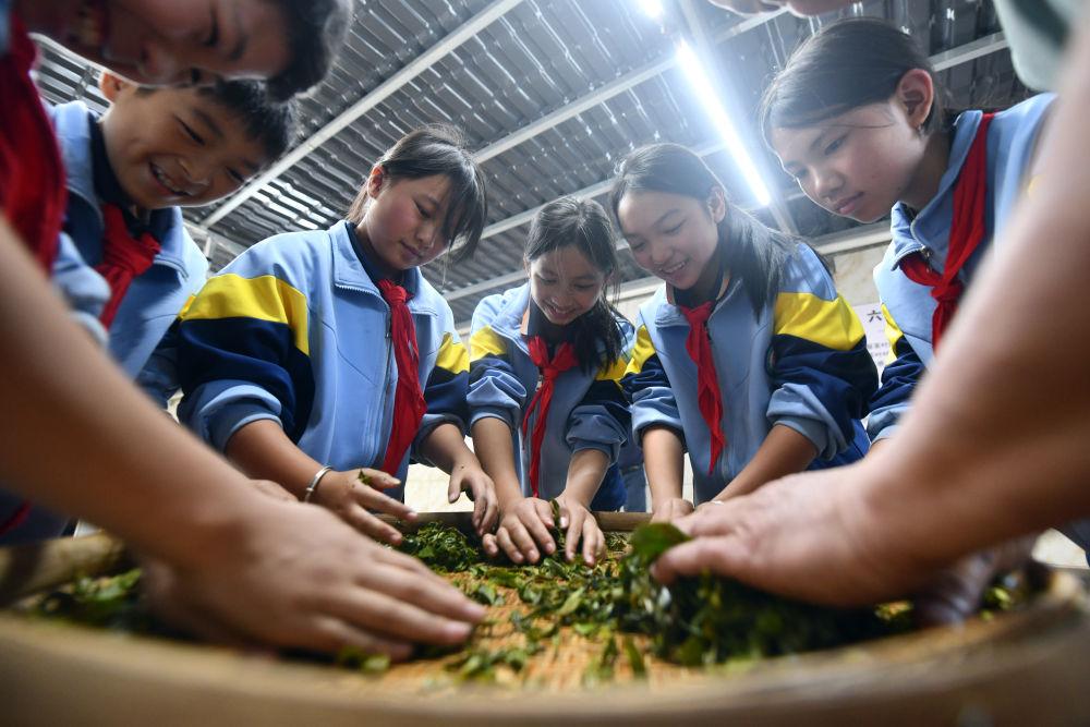 2024年12月3日,學(xué)生們?cè)趶V西梧州市蒼梧縣六堡鎮(zhèn)塘平小學(xué)學(xué)習(xí)制作六堡茶。廣西六堡茶已有1500多年的歷史,其制作工藝被列入第四批國(guó)家級(jí)非物質(zhì)文化遺產(chǎn)代表性項(xiàng)目名錄。近年來,廣西圍繞打造千億元茶產(chǎn)業(yè)發(fā)展目標(biāo),深入實(shí)施綠色高效茶園建設(shè)、品牌提升和營(yíng)銷體系建設(shè)、產(chǎn)業(yè)融合和茶文化提升等多項(xiàng)工程,形成了以六堡茶為引擎,早春茶等特色優(yōu)勢(shì)茶協(xié)同發(fā)展的產(chǎn)業(yè)格局,茶產(chǎn)業(yè)煥發(fā)勃勃生機(jī)。六堡茶正沿21世紀(jì)海上絲綢之路運(yùn)達(dá)八方,香飄海內(nèi)外。2024年,廣西六堡茶產(chǎn)量達(dá)到4.3萬(wàn)噸,綜合產(chǎn)值超300億元。