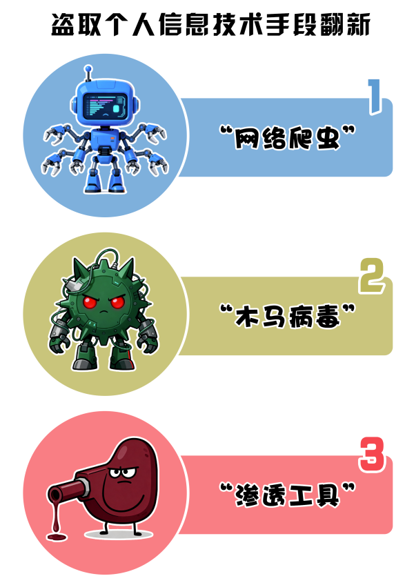 如今,不法分子犯罪手段持續(xù)翻新,不僅推出獲取公民個(gè)人信息的“定制化服務(wù)”,更是利用網(wǎng)絡(luò)爬蟲、木馬病毒、滲透工具等新型技術(shù),大肆竊取數(shù)據(jù),給公民日常生活帶來困擾,也埋下了信息安全隱患。