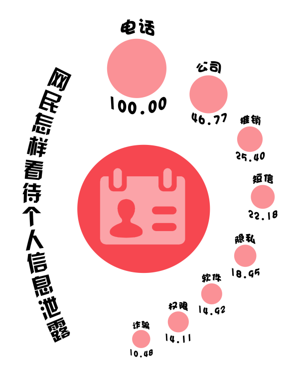 (數(shù)據(jù)來源:選取嗶哩嗶哩視頻《可怕!這7家科技公司盜取身份證信息,4.68億個(gè)人信息泄露》下的931條一級(jí)評(píng)論,做分詞及歸一化處理,進(jìn)行分詞后將熱度最高的詞語規(guī)定為100)