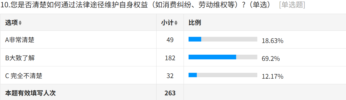 圖一:“您是否清楚如何通過法律途徑維護(hù)自身權(quán)益”問題的調(diào)查問卷結(jié)果