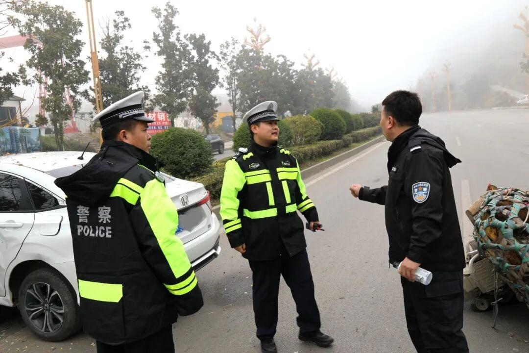 “立即停下,警戒現(xiàn)場!”隊員們立即分工協(xié)作:一組在事故現(xiàn)場前后方設(shè)置警戒區(qū)域、指揮過往車輛減速繞行、搭建起臨時戒護圈,另一組對涉事白色汽車進行險情排查,查看摩托車駕駛員傷情,安撫其情緒,同時撥打畢節(jié)市公安局七星關(guān)分局交通警察大隊指揮中心電話,詳細通報了事故現(xiàn)場情況、具體位置、車輛信息及現(xiàn)場戒護措施,請求交警迅速到場處理。