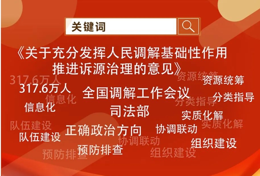 調(diào)解是具有中國特色的化解矛盾、消除紛爭、促進(jìn)和諧的非訴訟糾紛解決方式,被國際社會(huì)譽(yù)為“東方經(jīng)驗(yàn)”“東方之花”。為堅(jiān)持和發(fā)展“楓橋經(jīng)驗(yàn)”,充分發(fā)揮調(diào)解維護(hù)社會(huì)和諧穩(wěn)定“第一道防線”作用 ……【詳細(xì)】