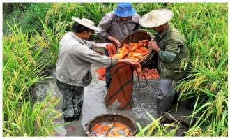為了讓更多村民依托稻魚共生在家門口致富,多年來,青田建立農(nóng)業(yè)文化遺產(chǎn)保護(hù)與發(fā)展的多方參與機(jī)制,對全縣稻魚共生產(chǎn)品實(shí)行“五統(tǒng)一”產(chǎn)供銷模式,讓稻魚米每斤價格躍升10元以上,形成了“一畝田、百斤魚、千斤稻、萬元錢”的共富產(chǎn)業(yè)。