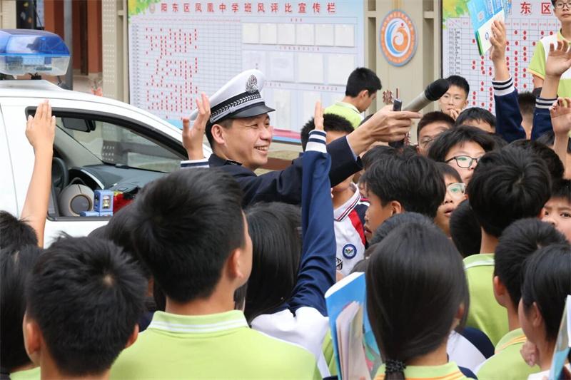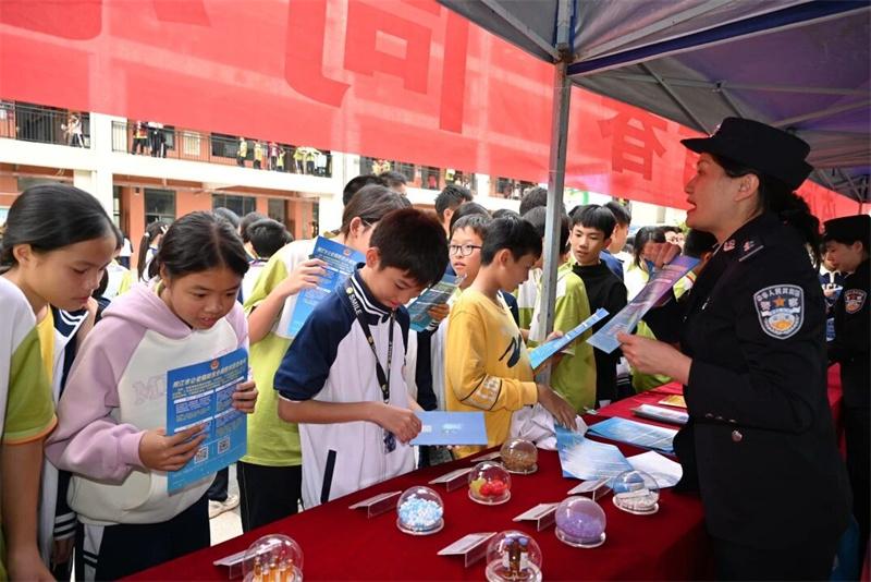 課室外,多部門聯(lián)合打造的“法治移動課堂”同步鋪開,形成全方位普法矩陣。在仿真毒品展示區(qū),禁毒民警結(jié)合新型毒品模型,揭露“跳跳糖”“奶茶粉”等偽裝手段,深刻警示學(xué)生警惕“第一口”誘惑;交警部門將流動宣傳車開進(jìn)操場,循環(huán)播放本地交通事故警示片,血淋淋的案例讓圍觀學(xué)生直呼“安全帶就是生命帶”?!?/p>
